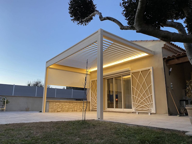 Pergola bioclimatique sur mesure Gard - Fenêtre sur les Alpilles